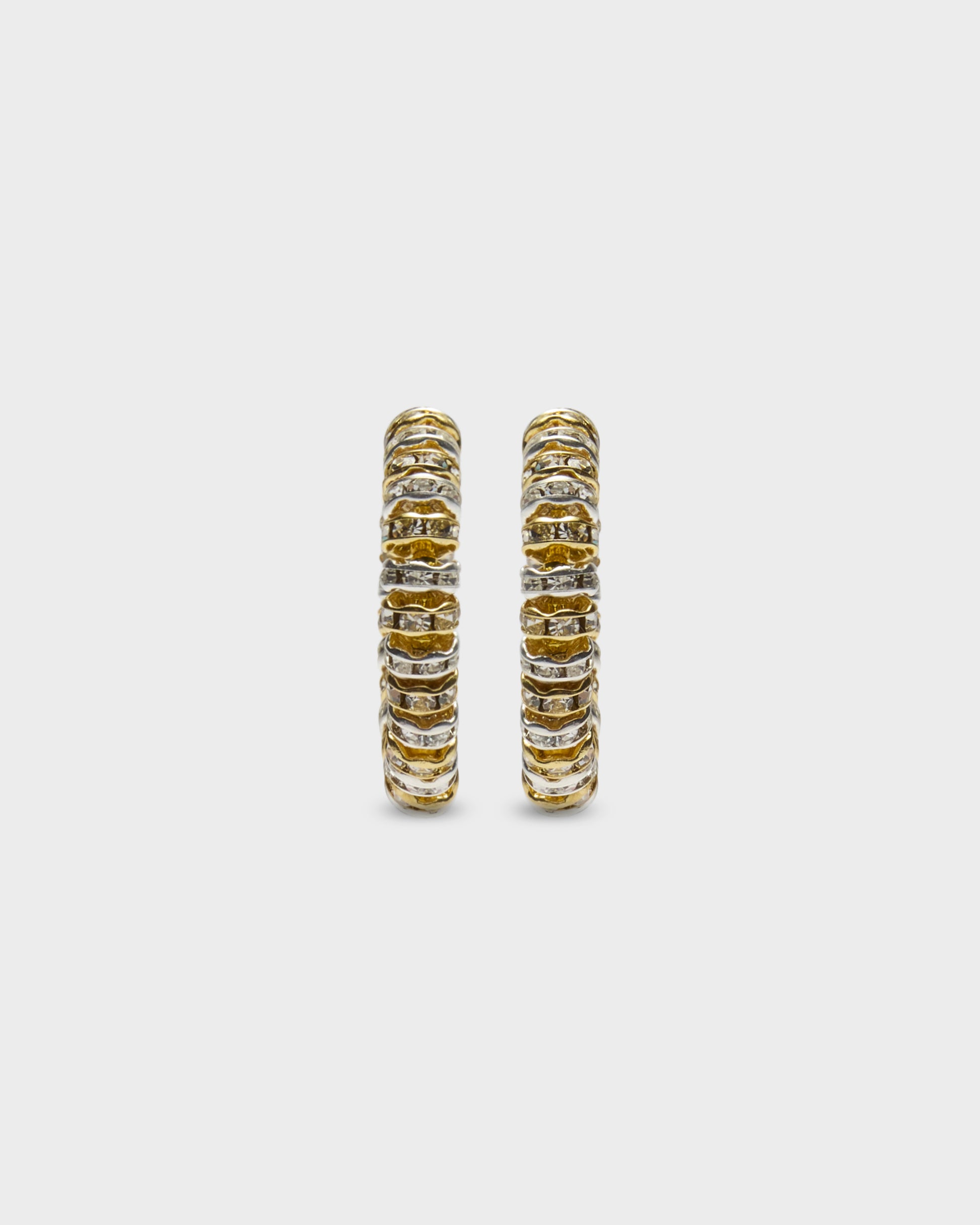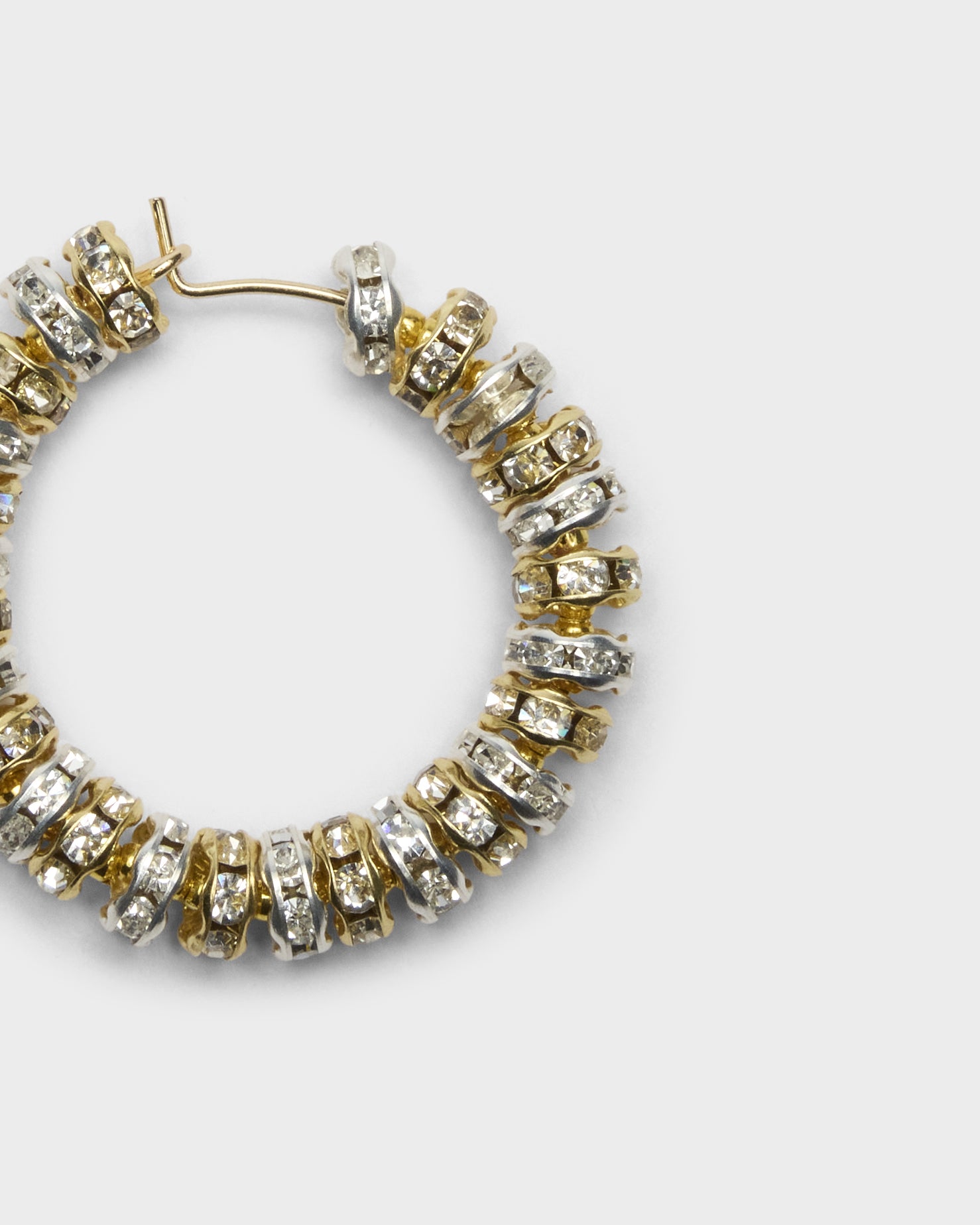 Brass earrings with two-tone gold and palladium plating and crystals. Handcrafted.