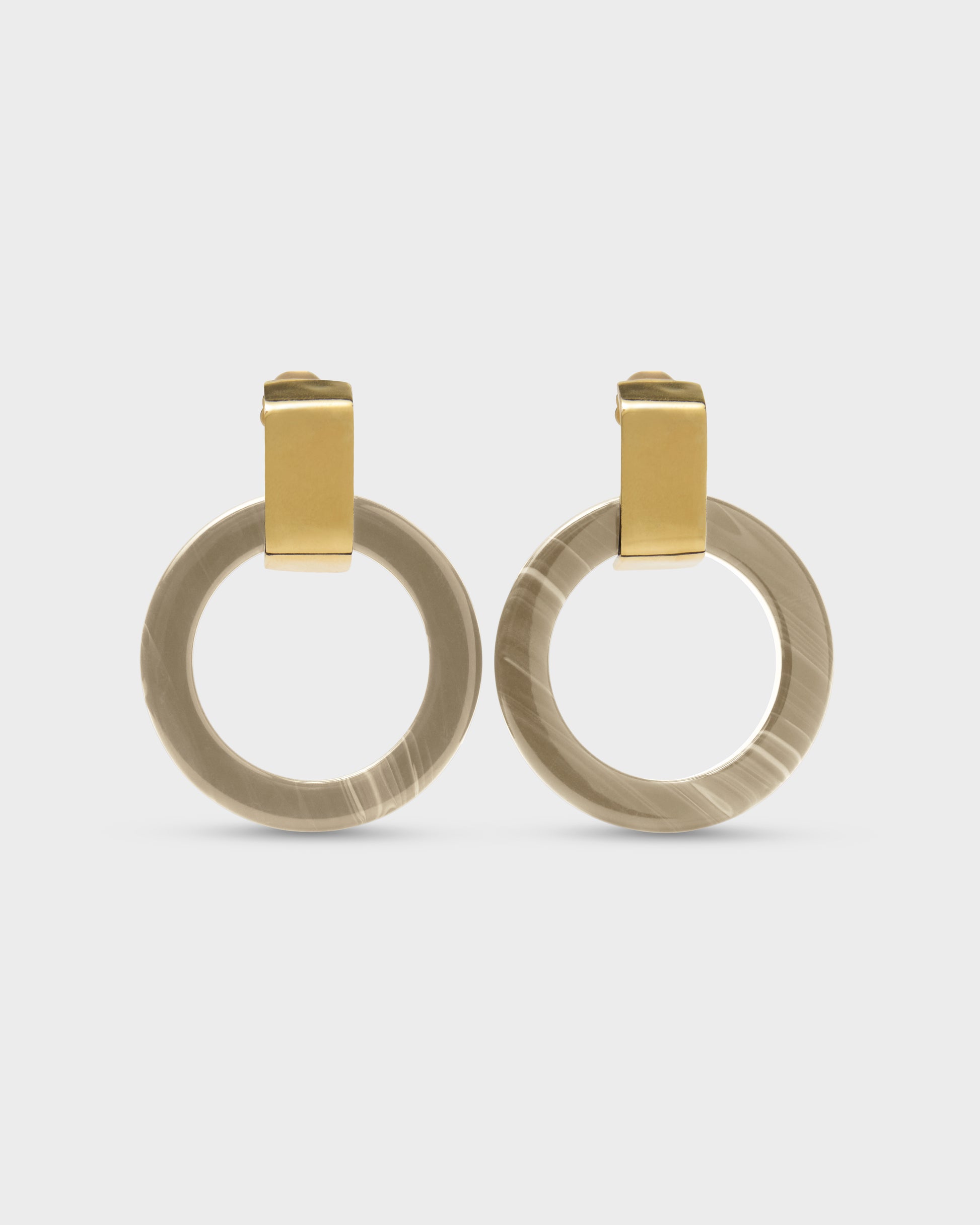 Resin drop earring with gold-plated brass detail. Handcrafted.
