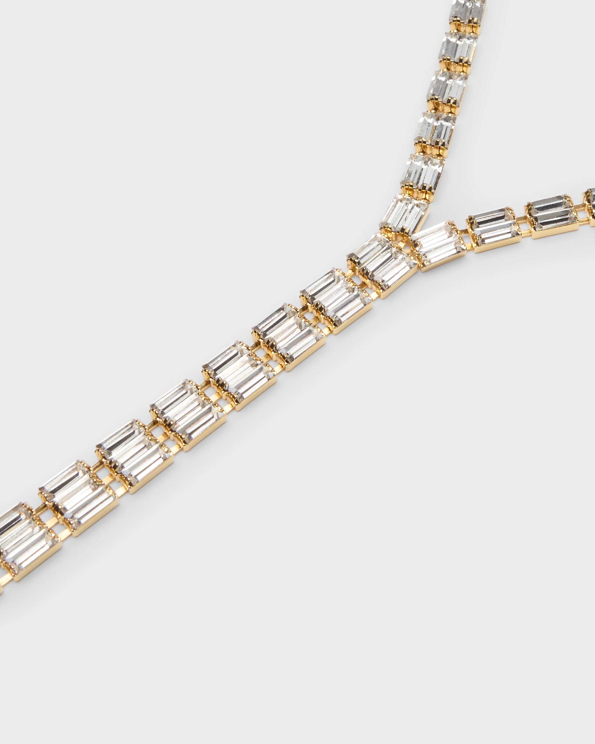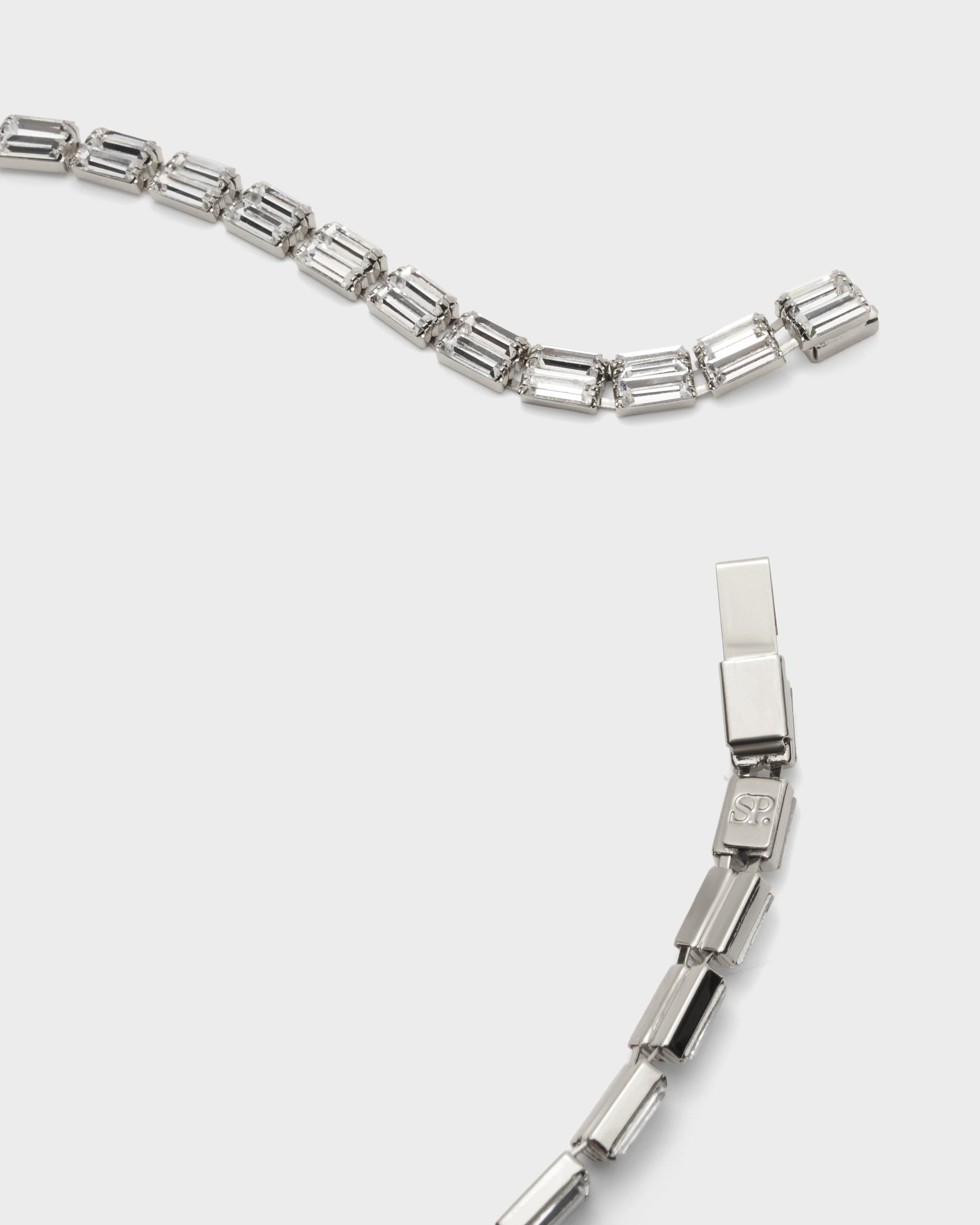 Collana in ottone placcato. File di cristalli a taglio baguette. Chiusura a scatto con cristallo. Lavorazione artigianale.
