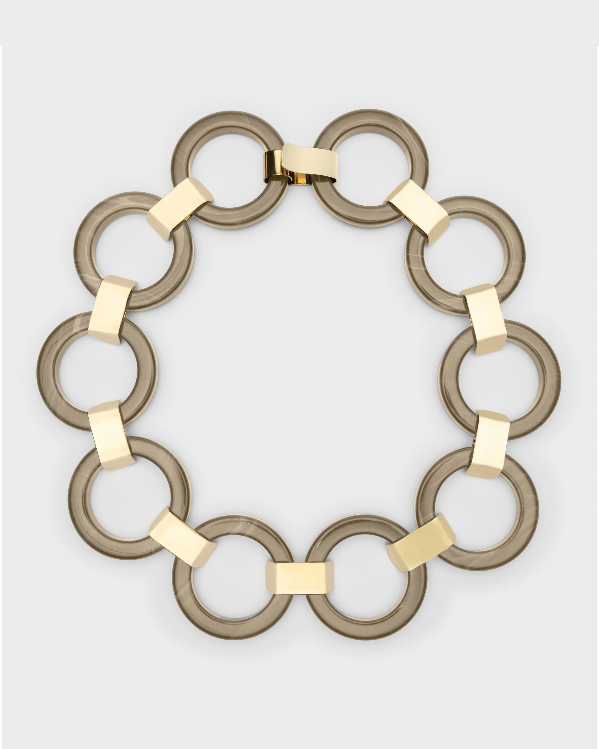 Collana girocollo in resina con dettaglio in ottone placcato oro. Chiusura a gancio. Lavorazione artigianale.