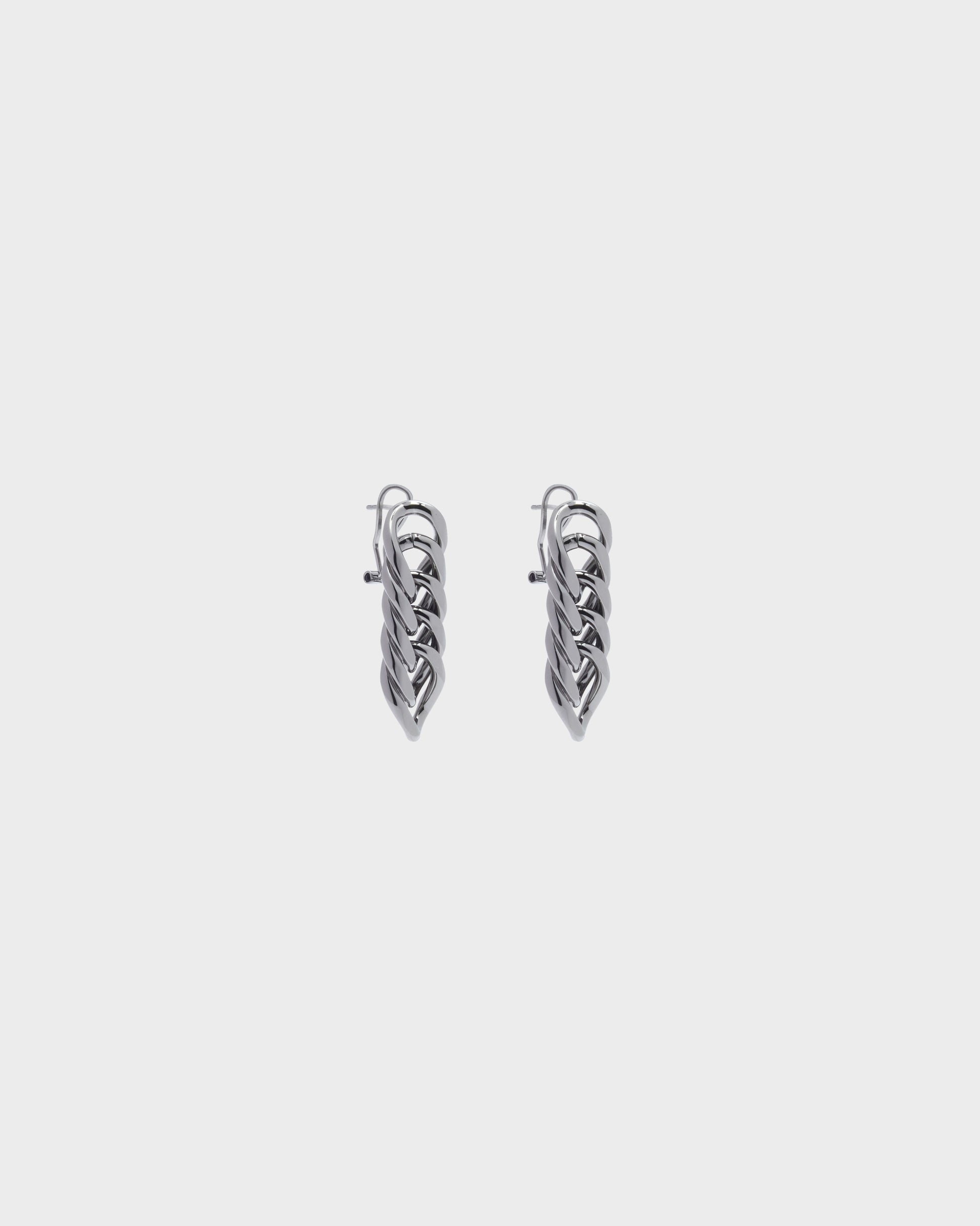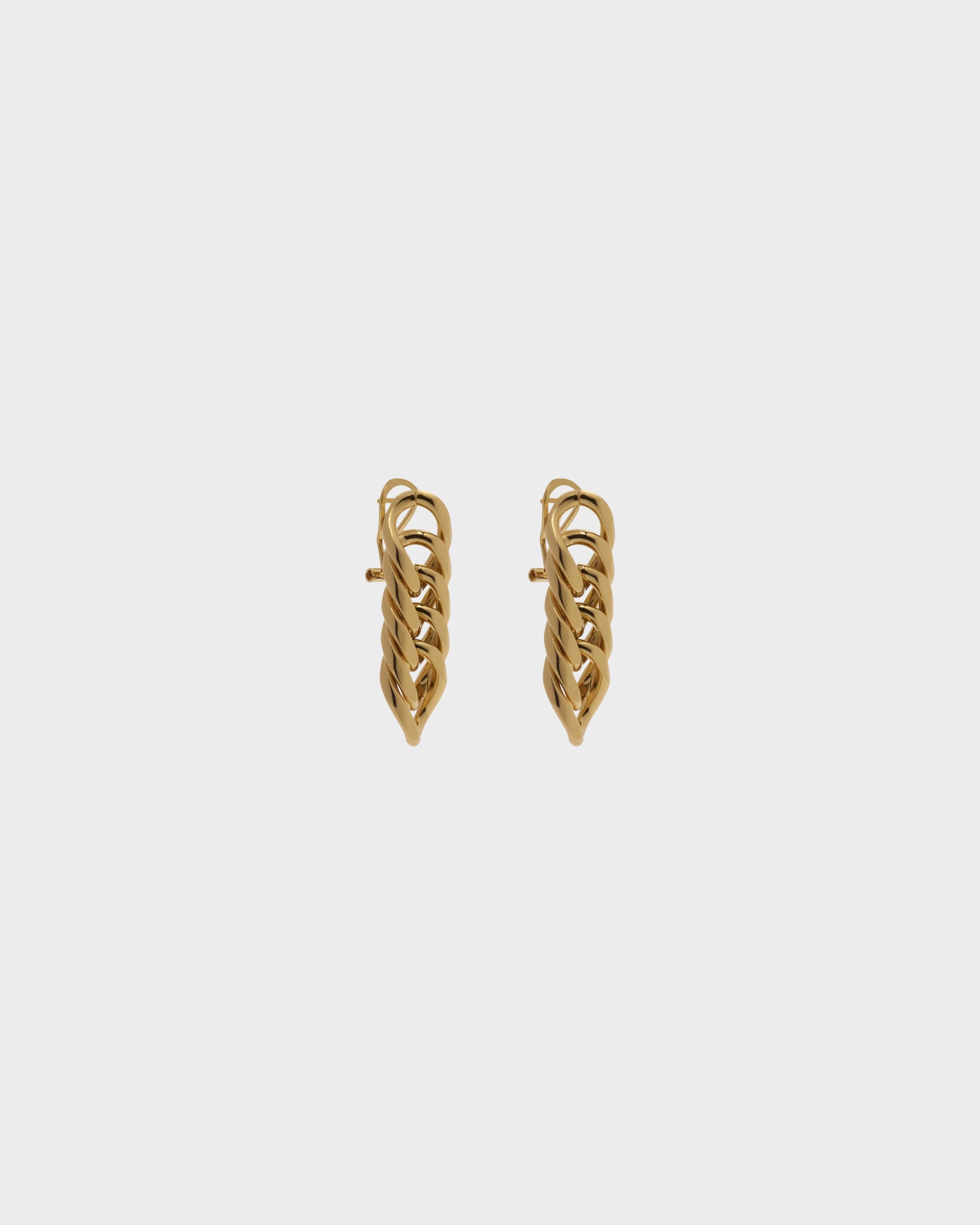 Orecchini pendenti in ottone placcato. Chiusura a perno con clip di sicurezza. Lavorazione artigianale.