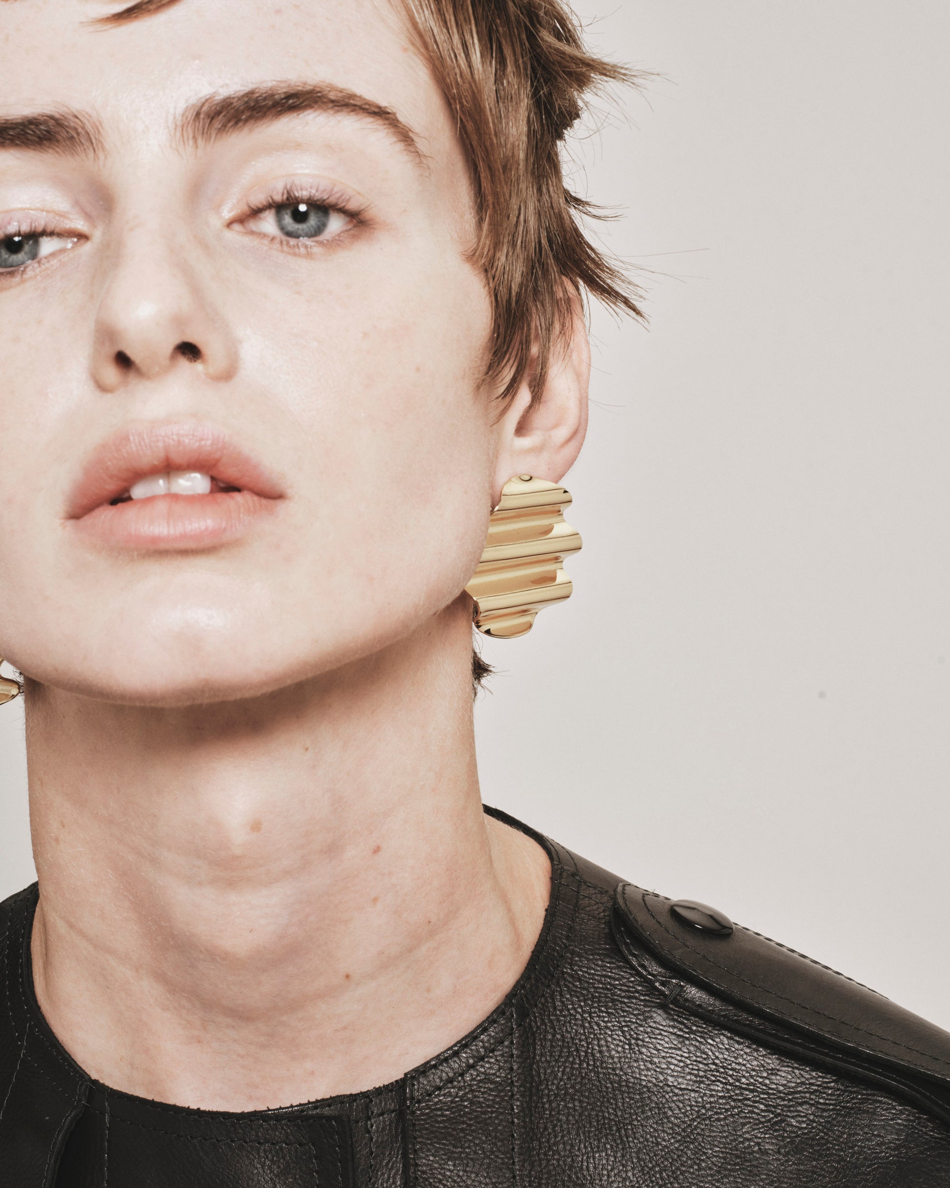 Orecchini in ottone placcato oro. Lavorazione artigianale a onde.