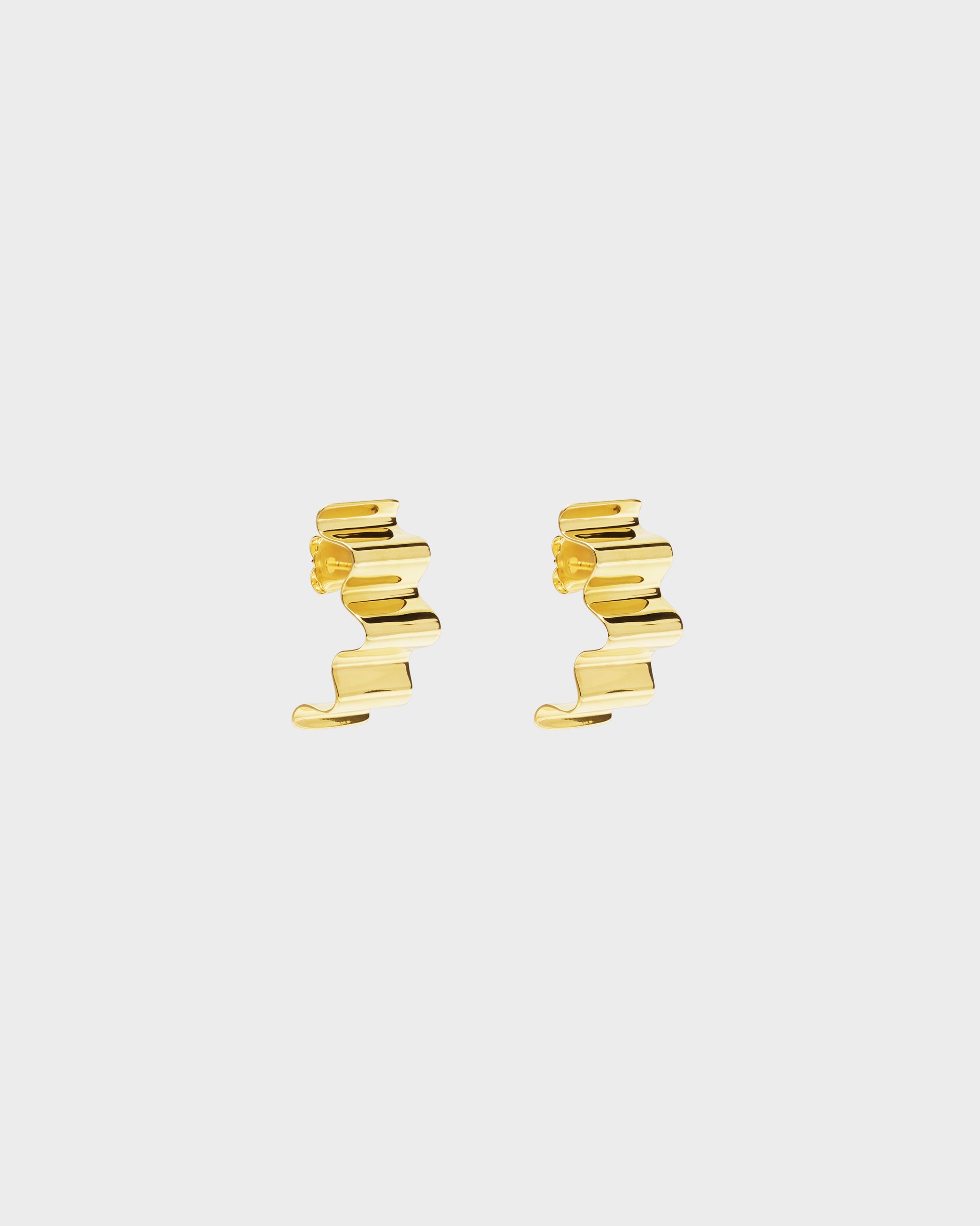 Orecchini in ottone placcato oro. Lavorazione artigianale a onde.